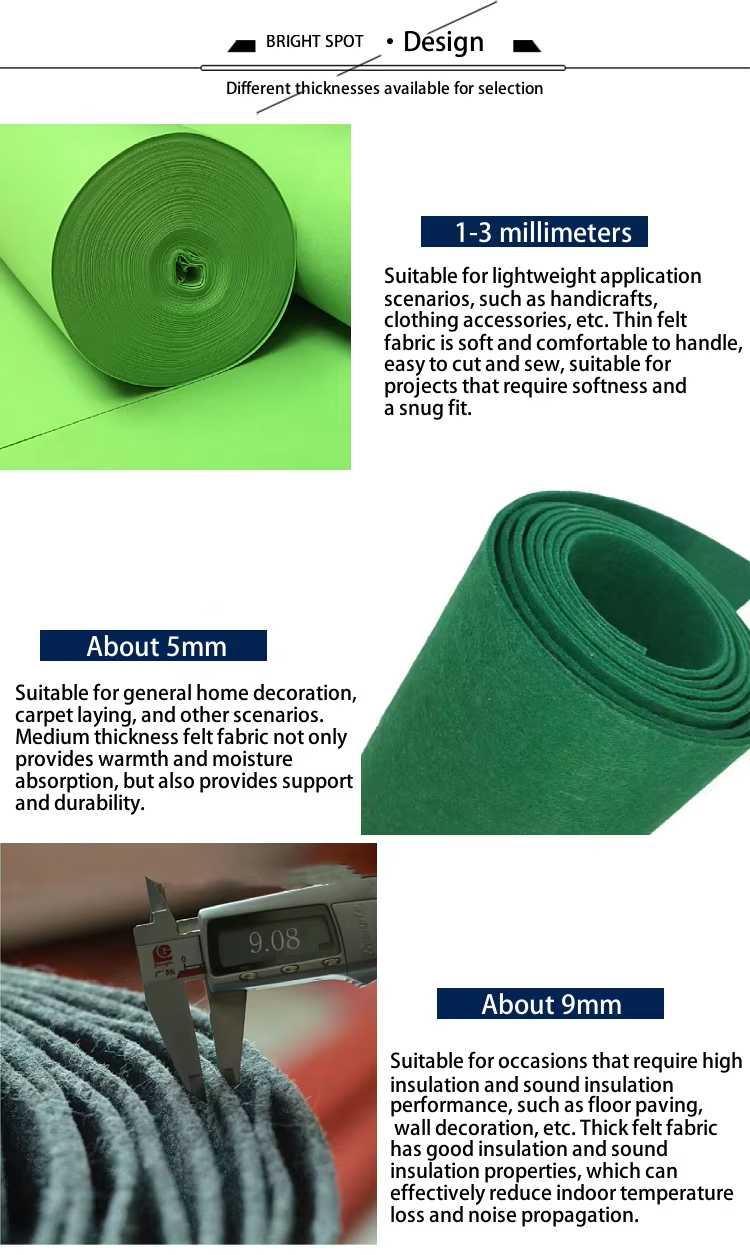 Depending on the fiber composition, felt fabric can be produced from polyester, polypropylene, wool, or blended fibers, offering flexibility to meet different performance requirements.